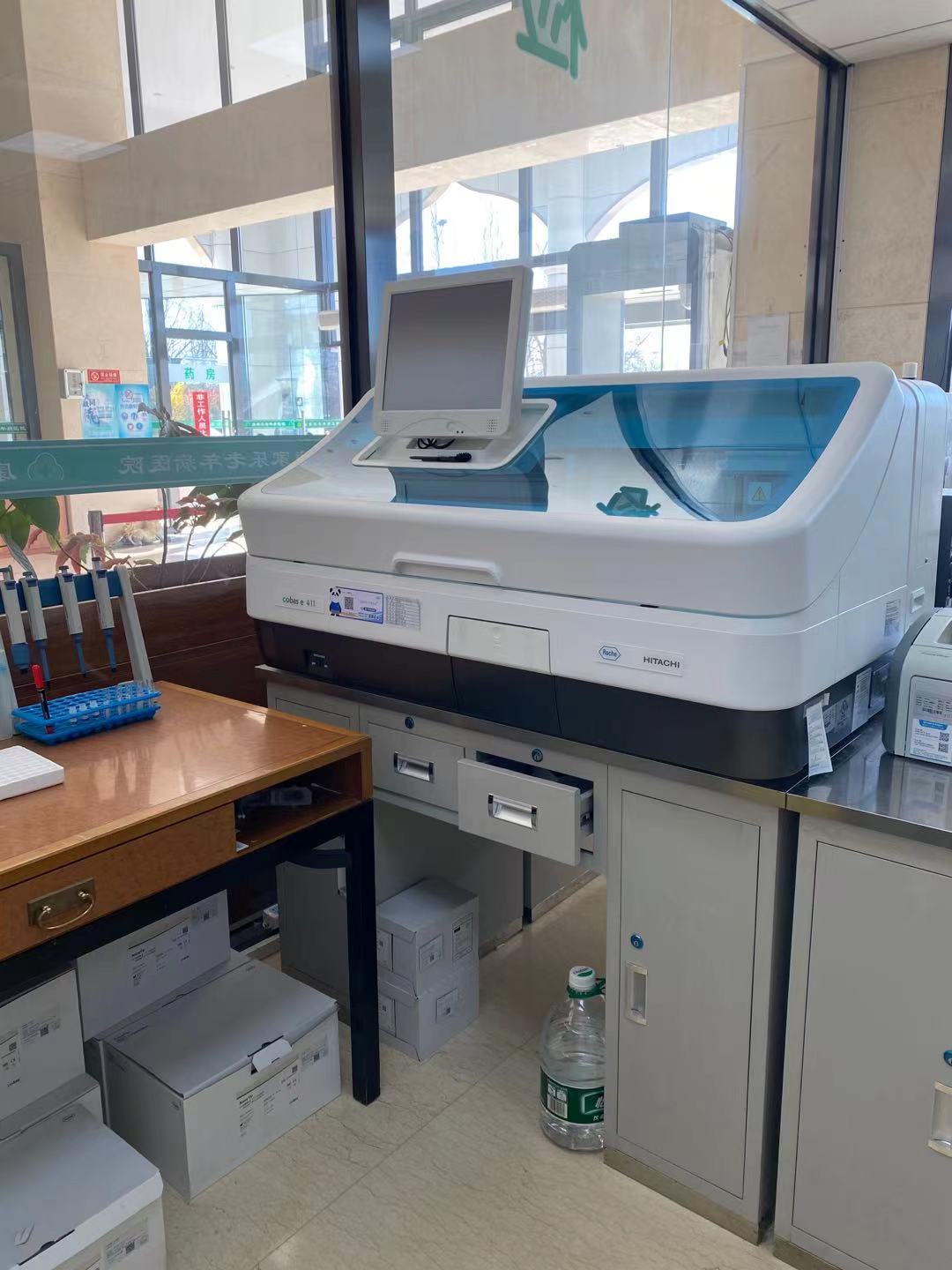 科室拥有迈瑞公司BS-830S全自动生化分析仪、罗氏CObas411免疫分析仪、希森美康XS-900i血细胞计数仪、希森美康CA660血凝仪、万孚干化学荧光免疫分析仪、众驰伟业全自动血沉仪、全自动尿分析仪等先进仪器。